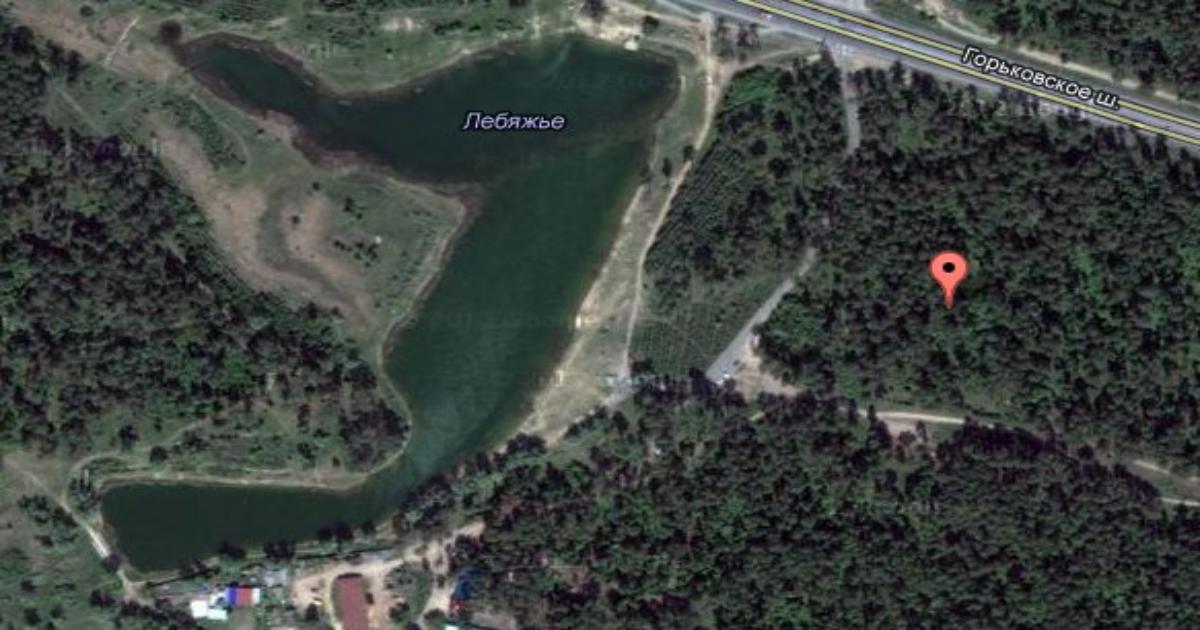 Самая загадочная казанская площадка сейчас находится на Лебяжьем озере. Стрелка показывает в лес, она действительно спрятана в лесу?