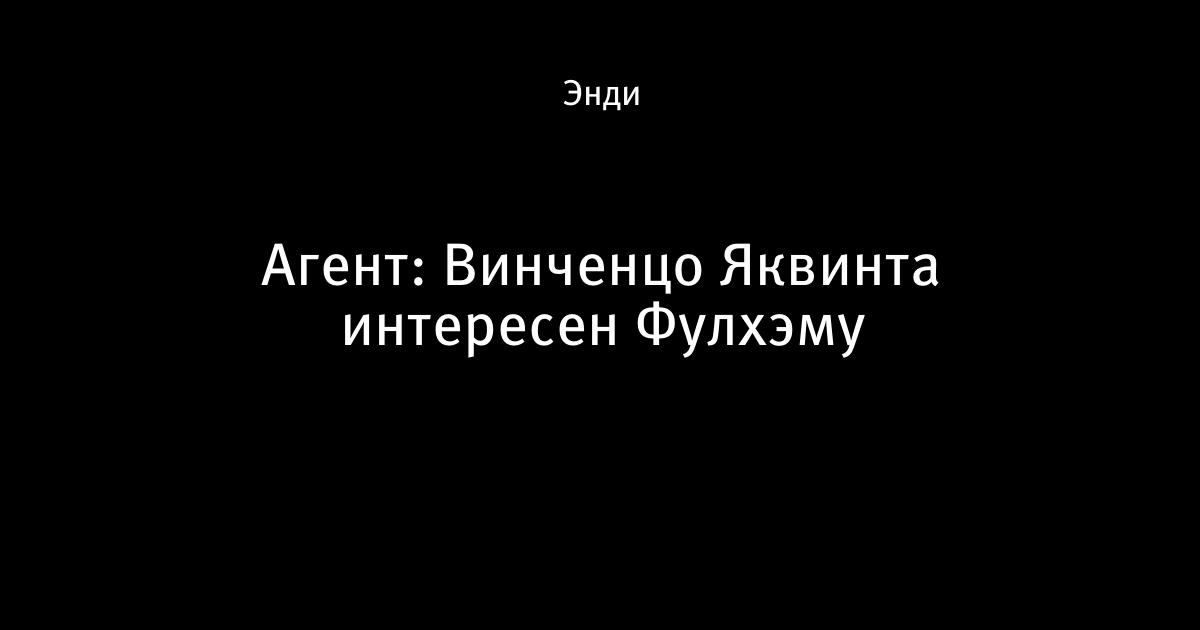 "В настоящее время мы рассматриваем несколько возможностей для продолжения карьеры в Италии, но не сбрасываем со счетов Англию. Лондонский Фулхэм проявляет большую заинтересованность в Винченцо", — приводит слова Андреа Д’Амико Calcio Sport 24.