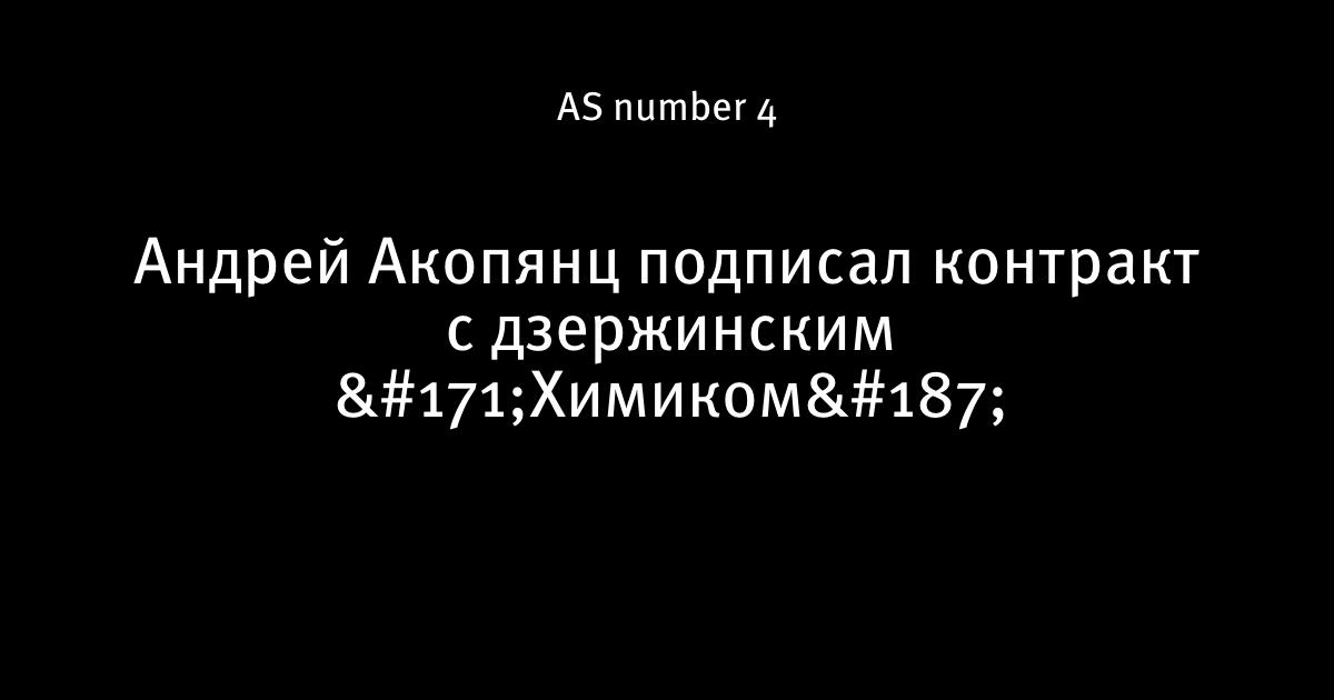 34-летний полузащитник Андрей Акопянц подписал контракт с дзержинским "Химиком". Воспитанник узбекского футбола, Акопянц, за свою карьеру выступал за узбекские "Пахтакор" и "Динамо" (Самарканд), белорусскую "Дариду", латвийскую "Даугаву и российские команды "Ростов", "Черноморец", "Нижний Новгород", "Луч-Энергия" и "Факел", за который провел в сезоне-2011/12 27 матчей и забил 2 мяча.