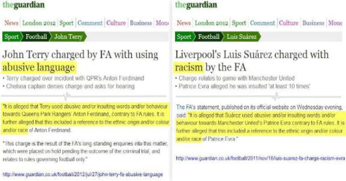 1. FA обвиняет Джона Терри в использовании оскорбительных слов в адрес Антона Фердинанда