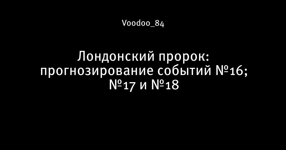 Лондонский пророк: прогнозирование событий №16; №17 и №18