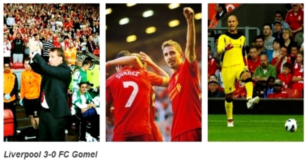 Первый домашний матч на "Энфилде" подарил болельщикам яркую, атакующую игру. Лучшего дебюта для нового наставника "мерсисайдцев", Брендана Роджерса, и не придумаешь. По сравнению с первым матчем на поле с первых минут не оказалось Брэда Джонса, Джейми Каррагера, Джея Спирринга и Джо Коула. Их заменили Пепе Рейна, Даниэль Аггер, Луис Суарес и Лукас Лейва. С самого начала матча "красные" завладели тотальным преимуществом, отлично владея мячом и создавая один опасный момент за другим. Быстро нашли общий язык новичок "Ливерпуля" Фабио Борини и Луис Суарес, и в один из таких моментов итальянец открыл счет своим мячам за команду, после отличного прохода уругвайца по левому флангу атаки. И в дальнейшем хозяева не отпускали из рук нитей игры, забив еще дважды. В итоге уверенная победа 3:0 и выход в плей-офф Лиги-Европы.