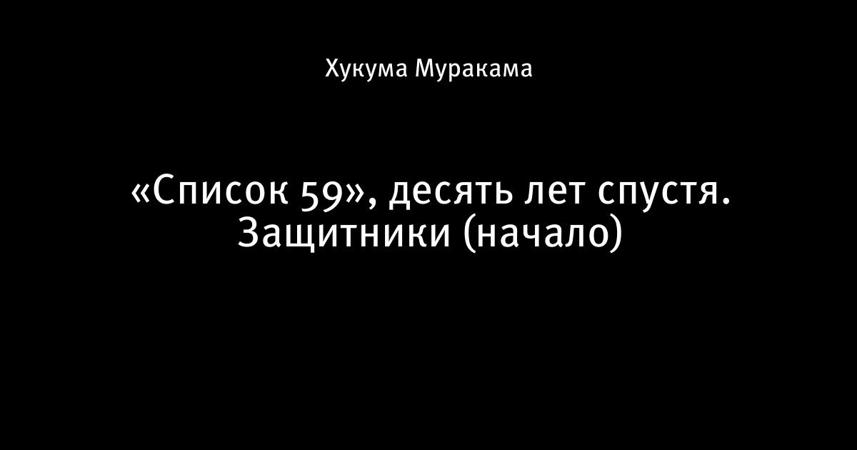 «Список 59», десять лет спустя. Защитники (начало)