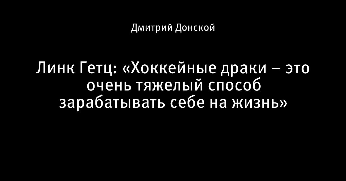 Линк Гетц: «Хоккейные драки – это очень тяжелый способ зарабатывать себе на жизнь»