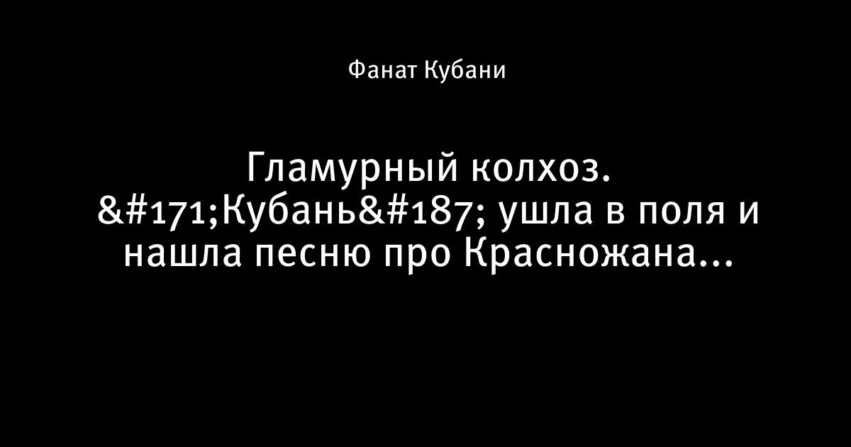 17 сентября 2012, 16:29 Гламурный колхоз. «Кубань» ушла в поля и нашла песню про Красножана... 1 Автор Фанат Кубани Этот пост опубликован в блоге на Трибуне Sports.ru. Присоединяйтесь к крупнейшему сообществу спортивных болельщиков! Другие посты блога Вы это видели?