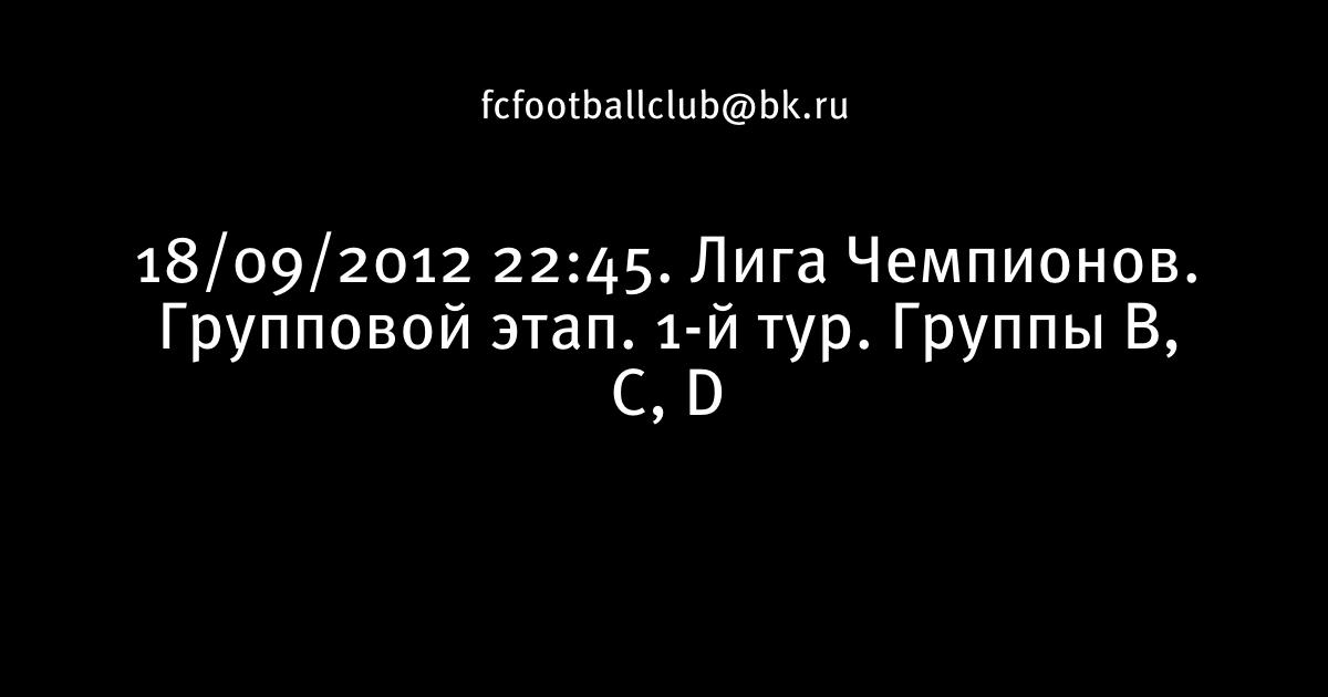 18/09/2012 22:45. Лига Чемпионов. Групповой этап. 1-й тур. Группы B, С, D
