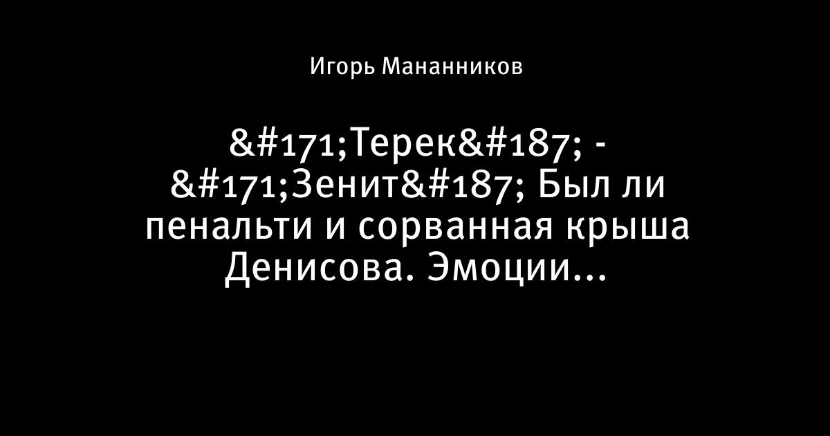 «Терек» - «Зенит» Был ли пенальти и сорванная крыша Денисова. Эмоции...
