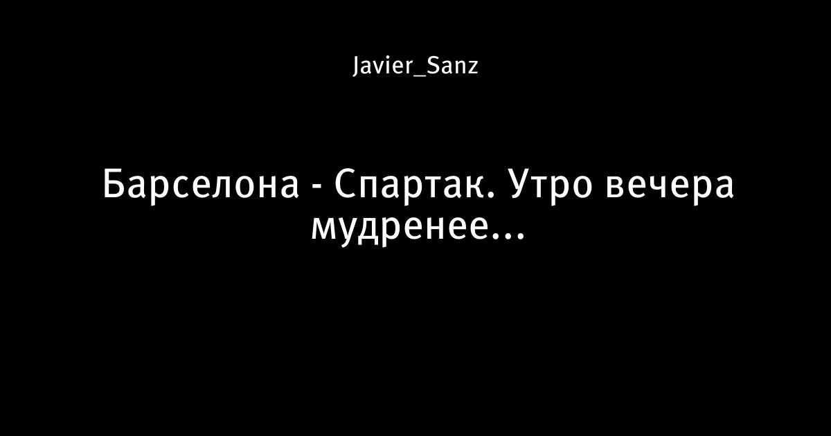 Вчера как обычно в дни еврокубков я уселся,а вернее улёгся на диване в ожидании матча "Барселона"-"Спартак" и предчувствие было...хорошим! Да!Да!Хорошим!Это не смотря на то,что было написано много "хорошего" в интернете о данном матче нашими "болельщиками",разном уровне команд,Камп Ноу и т.д. и т.п.