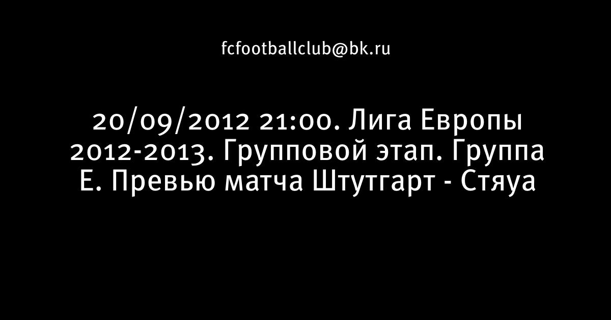 20/09/2012 21:00. Лига Европы 2012-2013. Групповой этап. Группа Е. Превью матча Штутгарт - Стяуа