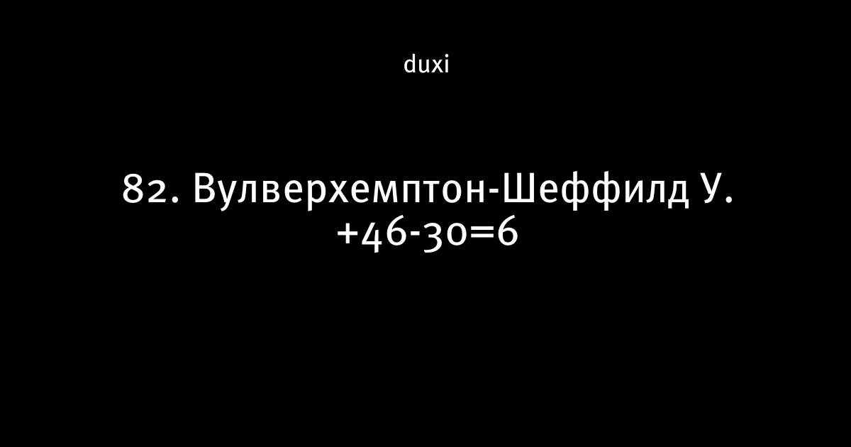 82. Вулверхемптон-Шеффилд У. +46-30=6