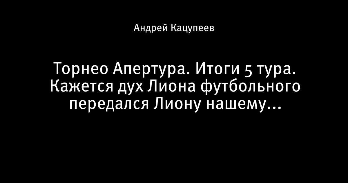 Торнео Апертура. Итоги 5 тура. Кажется дух Лиона футбольного передался Лиону нашему...
