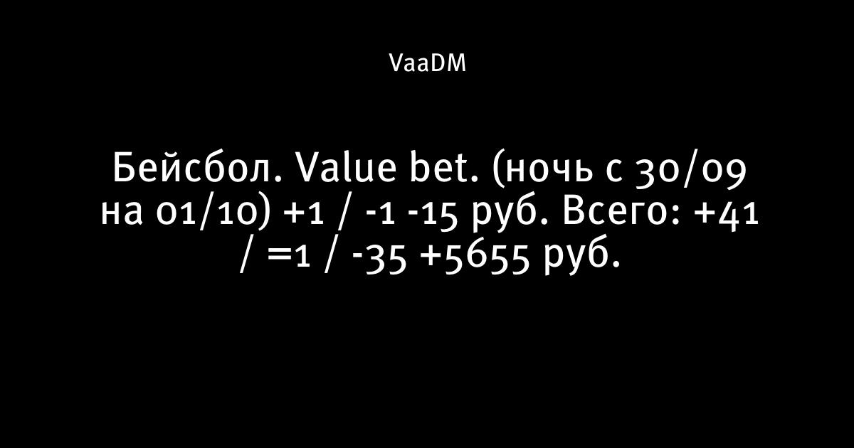 Бейсбол. Value bet. (ночь с 30/09 на 01/10) +1 / -1 -15 руб. Всего: +41 / =1 / -35 +5655 руб.