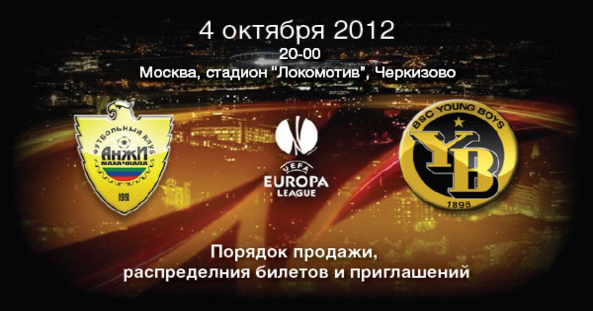 4 октября 2012 года, в четверг, в 20-00, в Москве, на стадионе Локомотив в Черкизово состоится матч группового раунда Лиги Европы УЕФА Анжи - Янг Бойз (Швейцария).