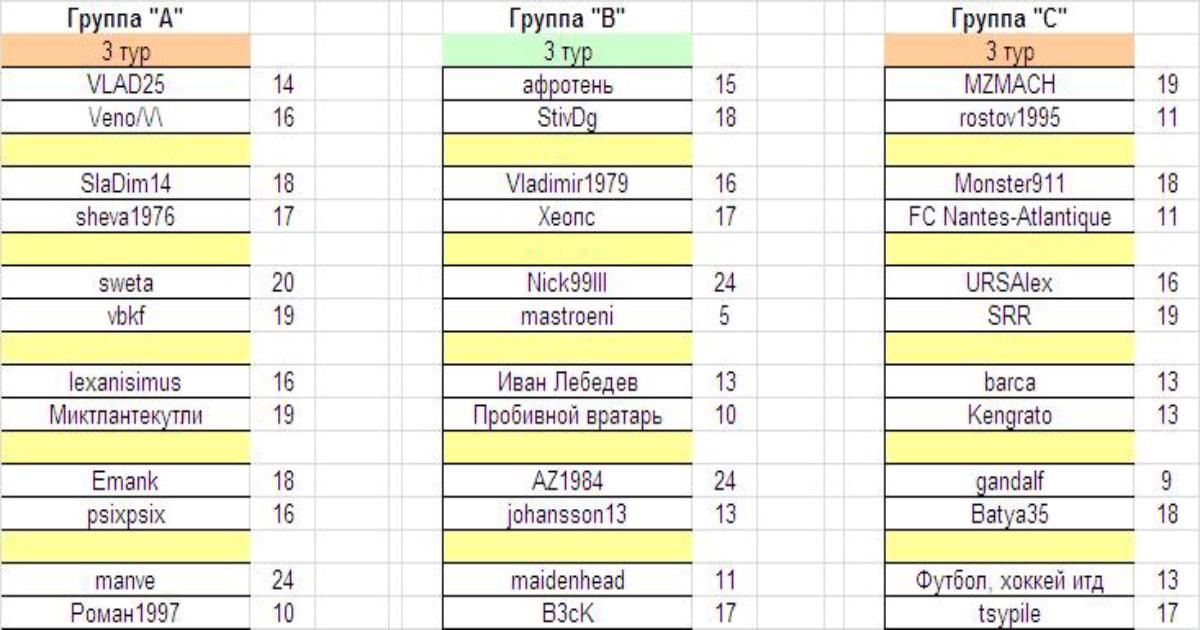 Турнирное положение в группах после сыгранного тура: