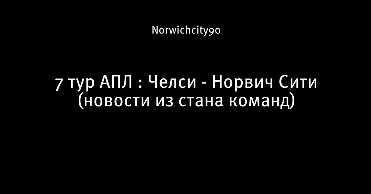 7 тур АПЛ : Челси - Норвич Сити (новости из стана команд)