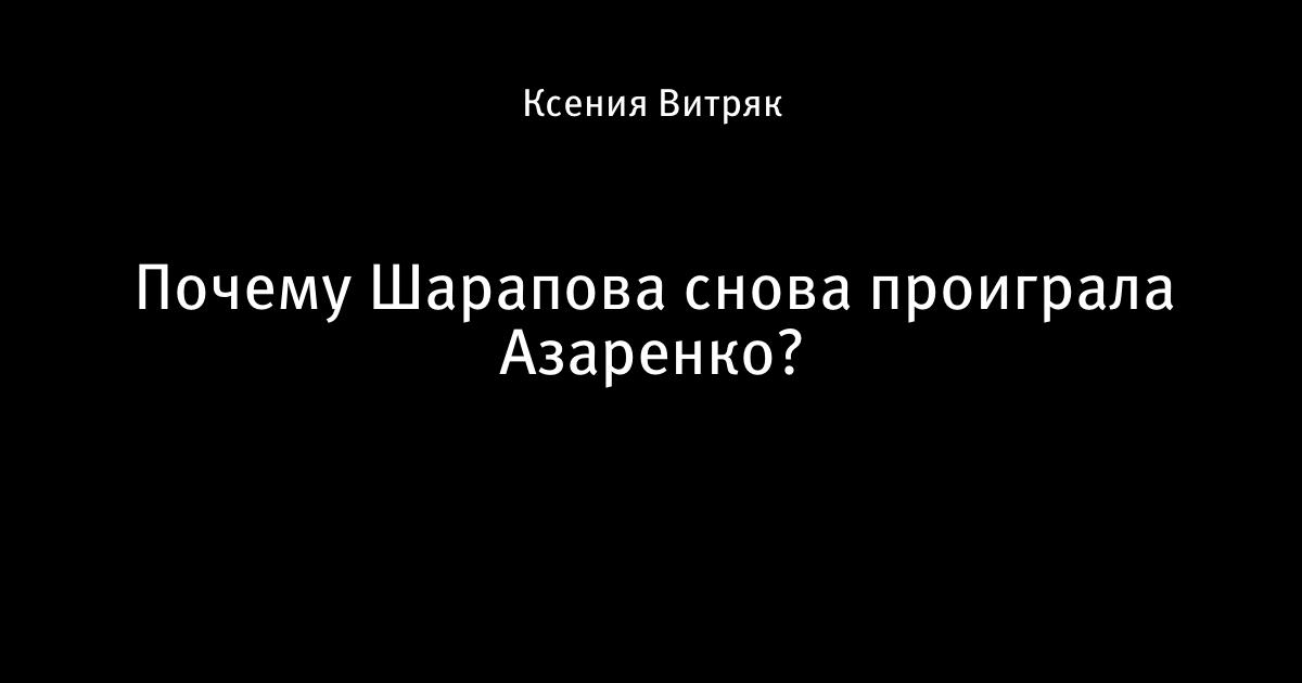 На самом деле все это не так сложно, как кажется. Речь ведь не идет о том, чтобы заставить Шарапову использовать резаные или укороченные как план на игру. Во-первых, у нее нет рук для тонкой игры, укороченным она может выиграть очко, но строить на таких вещах матчевую стратегию ей непозволительно. Во-вторых, в такой игре она сама запутается быстрее чем запутает Викторию. Маше в принципе сложно следовать какому-то плану, а тем более если их сразу два, потому что в этом случае надо играть осознанно, думать, а времени нет. Ее сильная сторона набитость и автоматизм, но из этого недостатка (в данном случае) тоже можно извлечь пользу. Ну, например, поставить себе задачу в отдельно взятом матче на ключевых очках играть наоборот: хочется бить вправо – бей влево, хочется по линии – бей кроссом и наоборот. Правило настолько простое, что его, мне кажется, даже реально поставить на автопилот. Это я, конечно, утрирую, но черт побери, два или три раза сыграть в один угол это не так сложно, зато куда более результативно, чем раз за разом пытаться разводить – безуспешно, потому что соперница каждый твой шаг читает. А еще Маше надо рисковать. Кому-то кажется, что Шарапова и так чрезмерно рисковая, но это не так. Для нее гладить линии – риск в зоне ее комфорта, это то, что она не боится делать, когда более-менее в себе. Риск для Шараповой – это укоротить в середине розыгрыша или выйти к сетке. Это реально страшно! А страшно, потому что она слишком серьезна и все еще не пускает в свою игру Игру.
