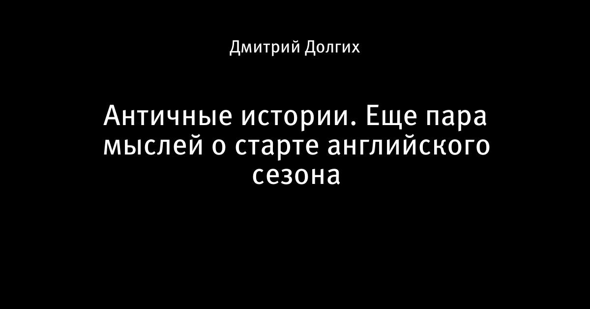 В новом английском сезоне сыграно что-то между четвертью и пятой частью (точные четыре девятнадцатых звучат слишком своеобразно), и он все еще находится на этапе античности. Основные центры уже обозначились, мифология сложилась, героев и конфликтов полно, но это все еще даже не средние века. Тем удобнее продолжать говорить о том, на что впоследствии, вероятно, не хватит ни времени, ни желания, ни поводов (я тут постараюсь в таком формате делиться впечатлениями об английском сезоне раз в пару месяцев, раз уж часто писать больше не способен), но что может быть вполне интересно не только прямо сейчас.