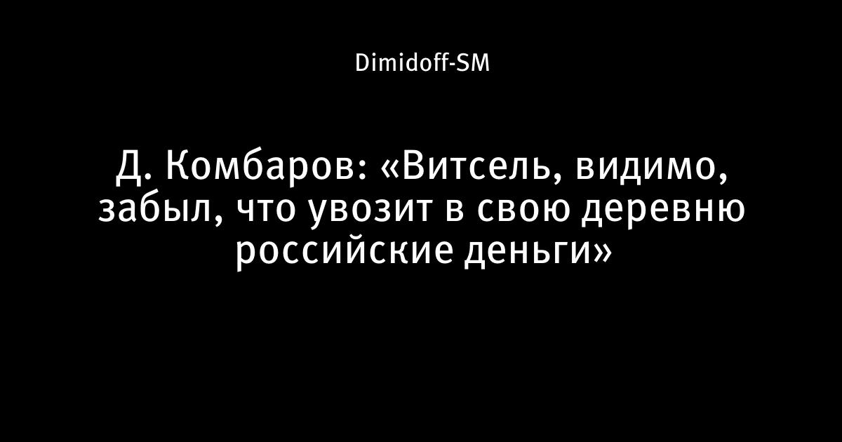 Д. Комбаров: «Витсель, видимо, забыл, что увозит в свою деревню российские деньги»