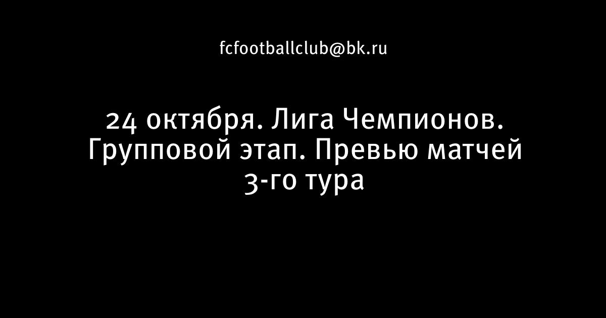 24 октября. Лига Чемпионов. Групповой этап. Превью матчей 3-го тура