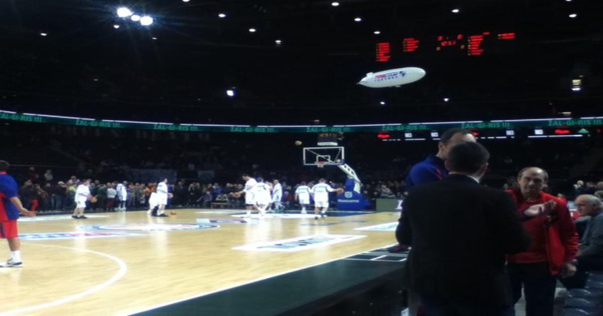 Справа и слева к арене стекались болельщики, а за спиной сияла огромная вывеска мегамолла «Акрополис». Дворец, о котором так много рассказывали накануне, впечатляет не сразу: со стороны это темно-серое здание с высокими стеклянными окнами и металлическими конструкциями мало чем отличается от многоэтажной парковки, расположенной здесь же, на другой стороне реки. Сам стадион под названием «Жальгирис-Арена» был построен около двух лет назад и открыт в августе-2011 – все домашние игры главного баскетбольного клуба Литвы сегодня проходят здесь.