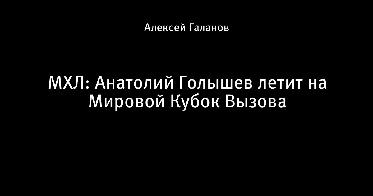 МХЛ: Анатолий Голышев летит на Мировой Кубок Вызова