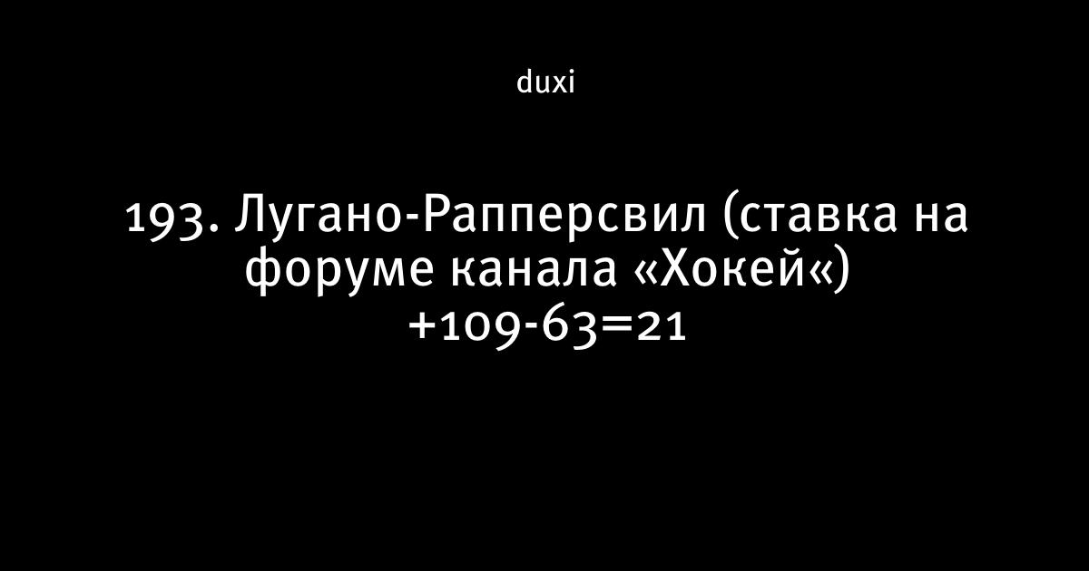193. Лугано-Рапперсвил (ставка на форуме канала «Хокей«) +109-63=21