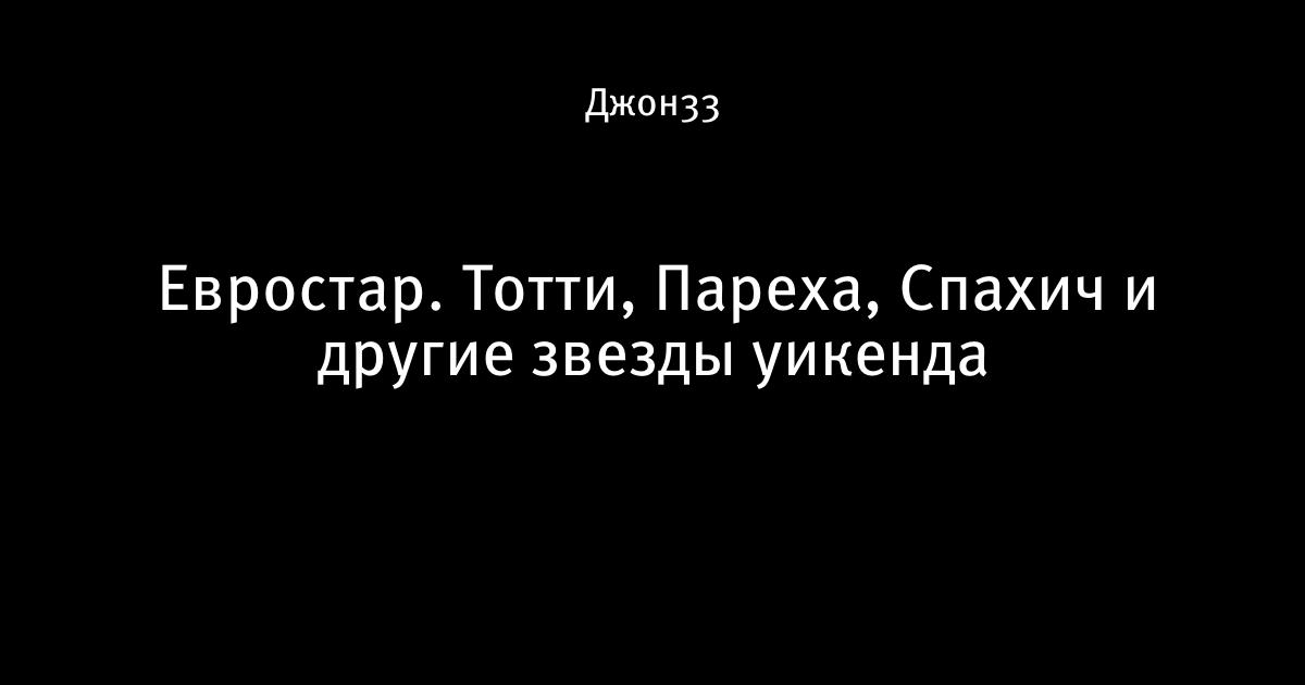 Евростар. Тотти, Пареха, Спахич и другие звезды уикенда