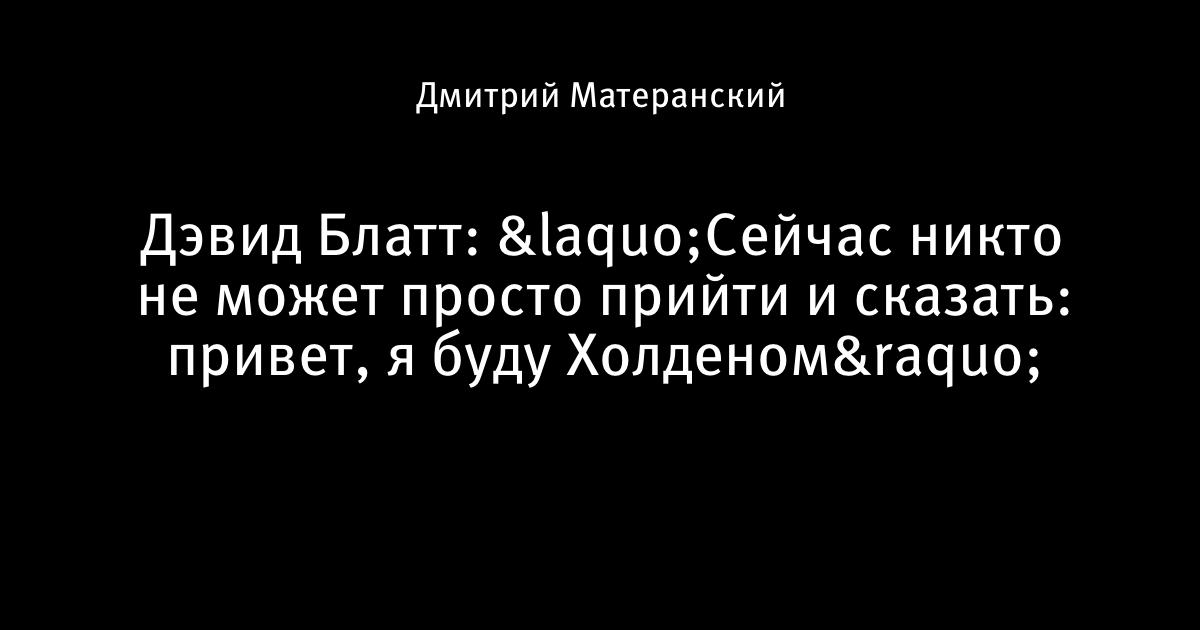 Дэвид Блатт: «Сейчас никто не может просто прийти и сказать: привет, я буду Холденом»