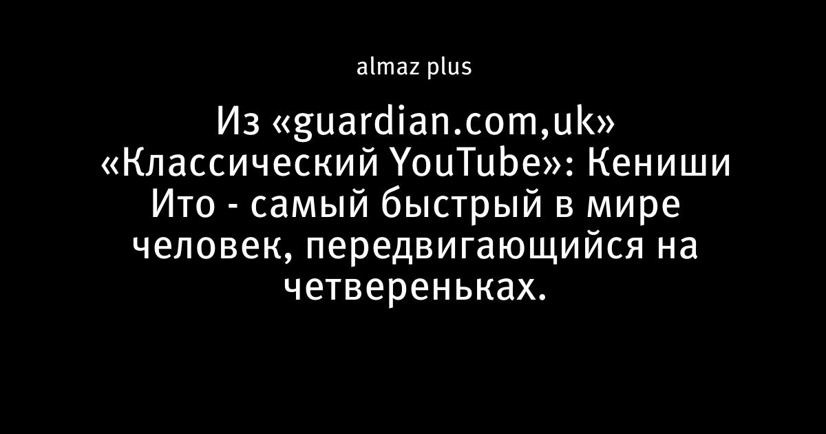 Из «guardian.com,uk» «Классический YouTube»: Кениши Ито - самый быстрый в мире человек, передвигающийся на четвереньках.