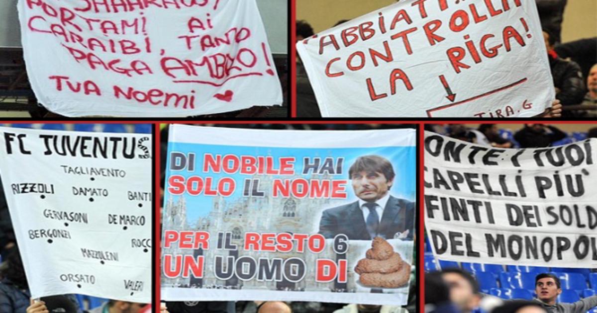 Баннеры на «Сан-Сиро» – привычное явление. Исключением не стал и вчерашний матч между «Миланом» и «Ювентусом». Но среди обычных и узнаваемых баннеров были и персональные, подготовленные специально к матчу. В центре внимания – Конте, Пато и «Ювентус».