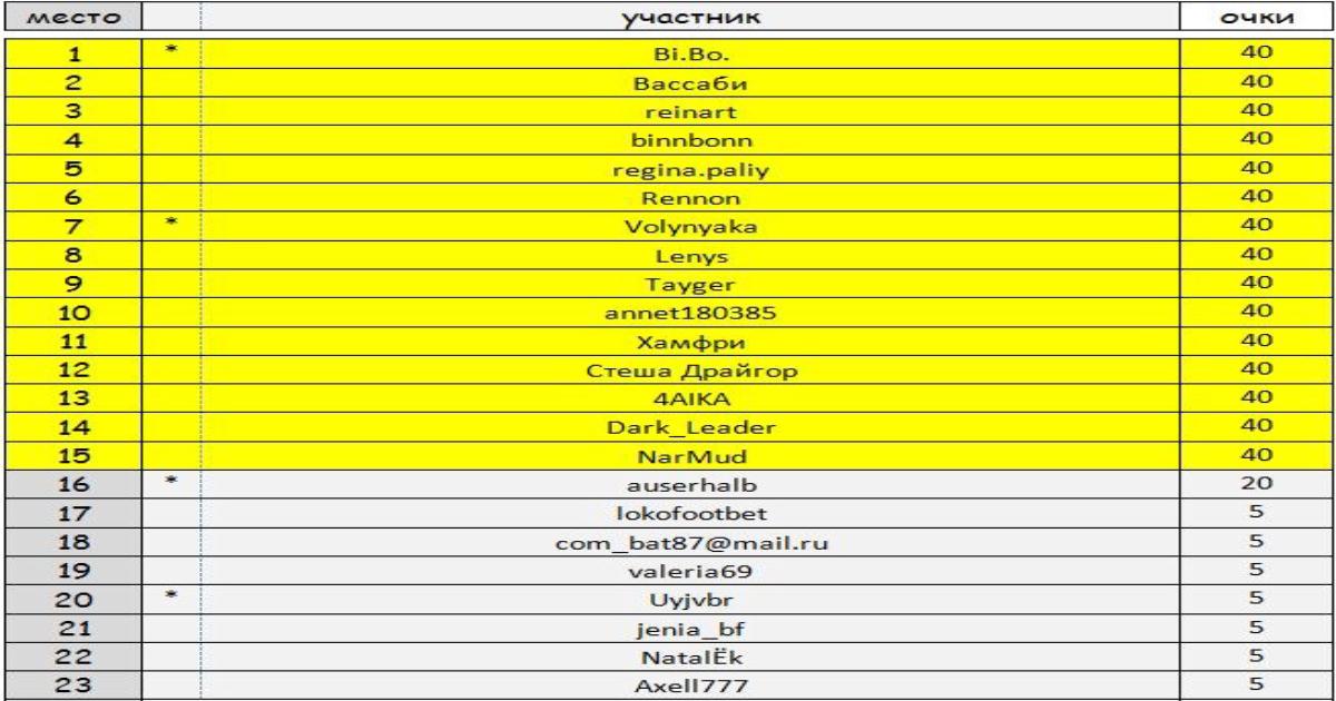 * Звёздочкой отмечены пользователи, участвующие в розыгрыше призового фонда, который составляет уже более 900 рублей.