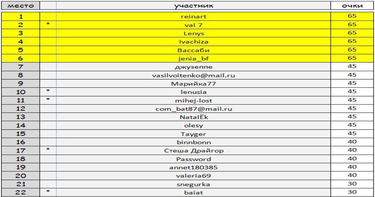 * Звёздочкой отмечены пользователи, участвующие в розыгрыше призового фонда, который составляет уже более 900 рублей.