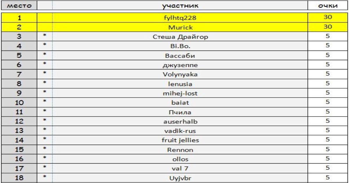 * Звёздочкой отмечены пользователи, участвующие в розыгрыше призового фонда, который составляет уже 1000 рублей.