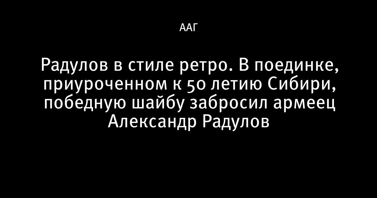 Радулов в стиле ретро. В поединке, приуроченном к 50 летию Сибири, победную шайбу забросил армеец Александр Радулов