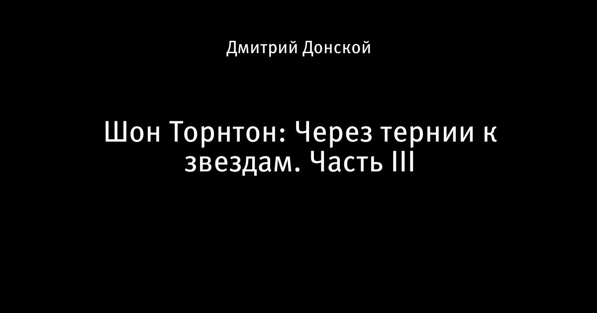 NESN продолжает рассказ о судьбе Шона Торнтона, одном из самых недисциплинированных бойцов в истории АХЛ. В третьей части повествования - драфт НХЛ, первые шаги в АХЛ, воспоминания главного тренера "Сент-Джонса" Аля МакАдама, и бывшего партнера - Грега Смита, дебют в "Норфолке", и подписание контракта с "Анахайм Майти Дакс". Перевод - в блоге Парни из стали.