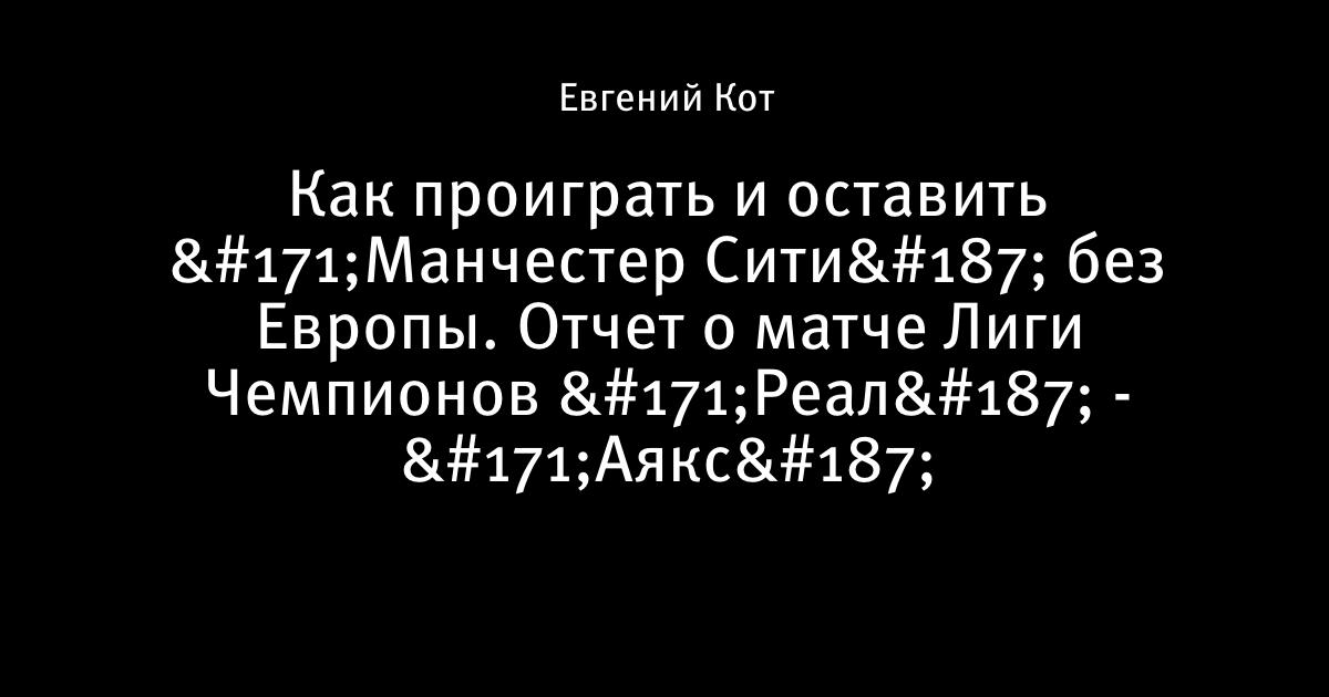 Как проиграть и оставить «Манчестер Сити» без Европы. Отчет о матче Лиги Чемпионов «Реал» - «Аякс»