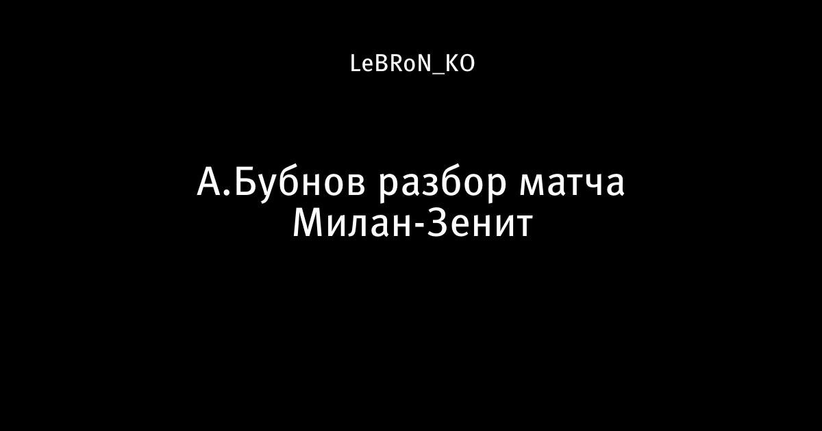7 декабря 2012, 21:31 А.Бубнов разбор матча Милан-Зенит 1 Автор LeBRoN_KO Этот пост опубликован в блоге на Трибуне Sports.ru. Присоединяйтесь к крупнейшему сообществу спортивных болельщиков! Другие посты блога Бубнов live