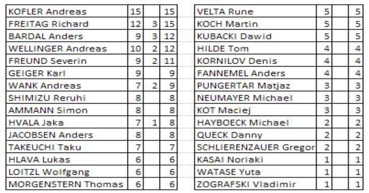 Новые цены связаны с выступлением Хвалы и Веллингера, которые сейчас значительно подорожали. Теперь ваши команды в большинстве своем превышают бюджет, поэтому дается три замены без штрафа. Следующее изменение цены, если оно не случится, произойдет после окончания "Турне четырех трамплинов". Неуказанные в списке - 10.