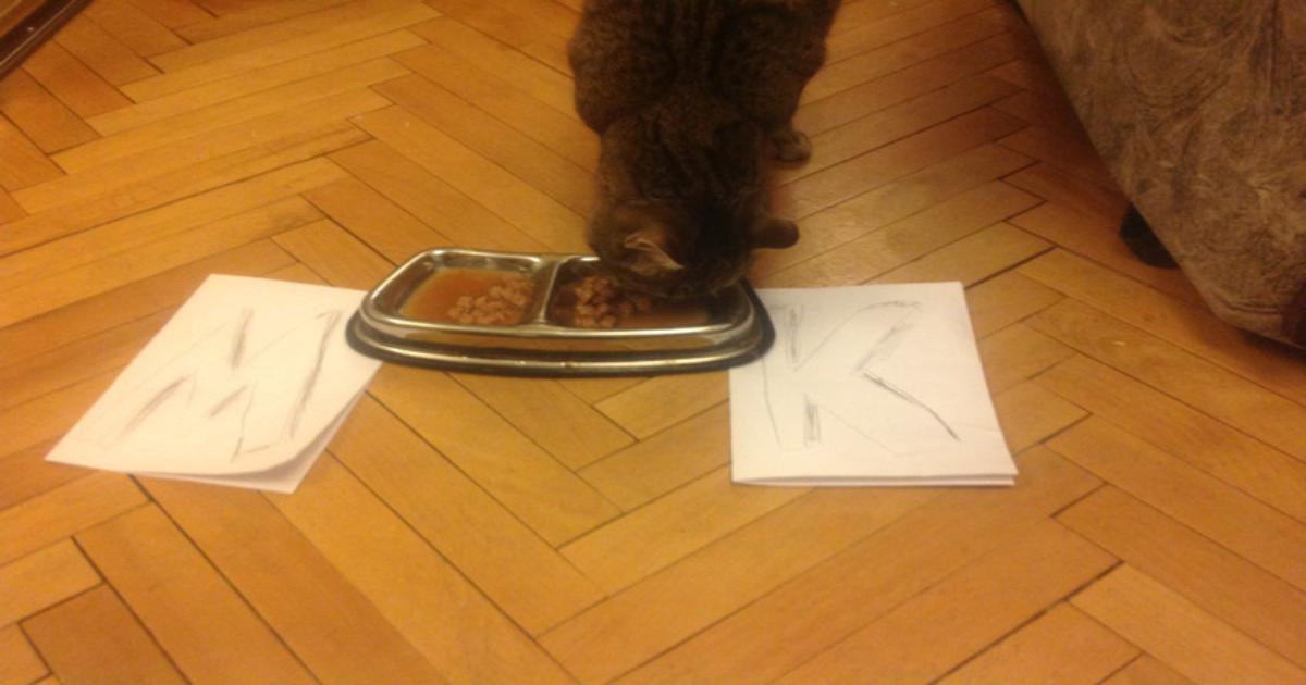 В очередной раз Боцык выбрал левую от себя миску (может, уже тогда пора менять способ определения прогноза), однако второй раз подряд сначала он подошел к правой миске, но есть стал - из второй. В общем, посмотрим. Буду болеть за Кубацки)