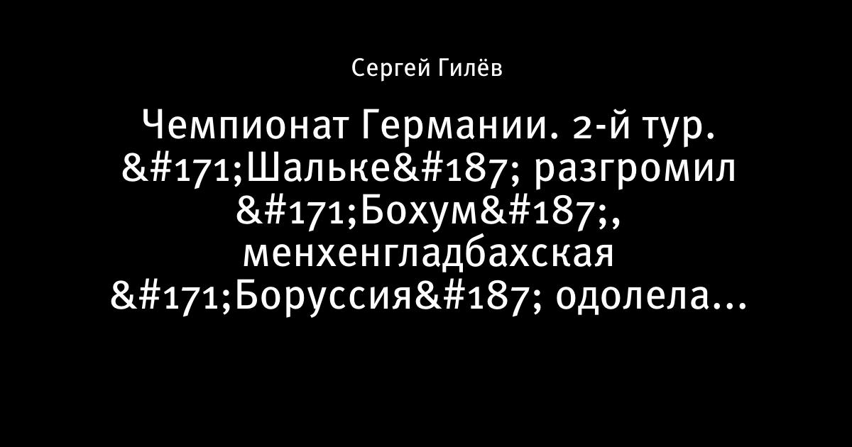 Чемпионат Германии. 2-й тур. «Шальке» разгромил «Бохум», менхенгладбахская «Боруссия» одолела «Герту», Погребняк забил первый гол в Германии