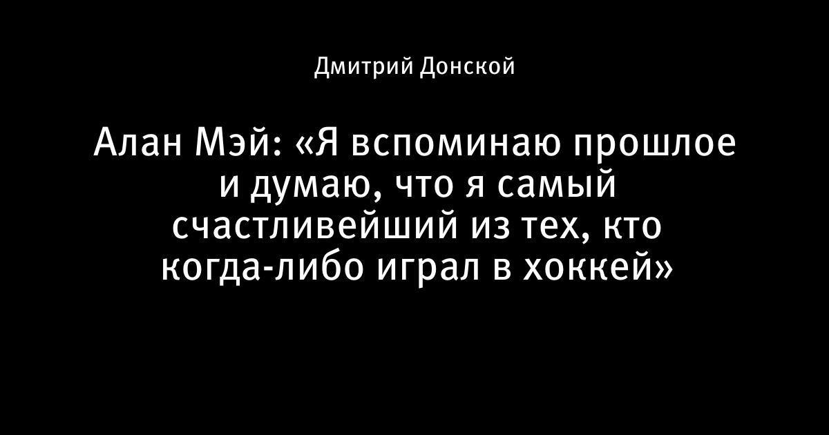 Алан Мэй: «Я вспоминаю прошлое и думаю, что я самый счастливейший из тех, кто когда-либо играл в хоккей»