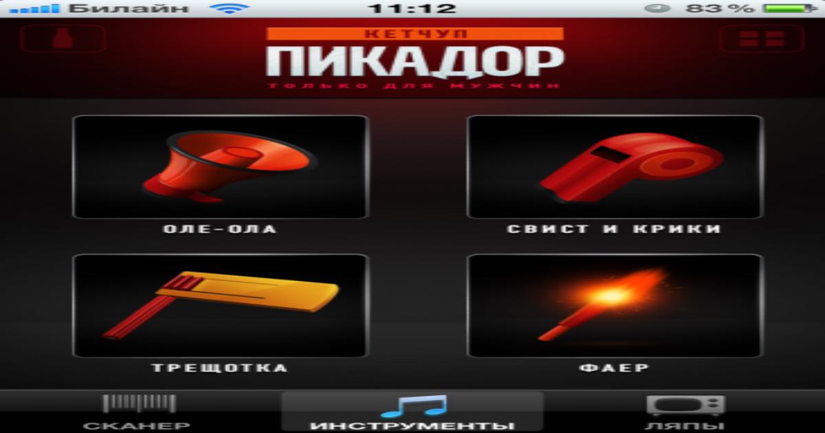 Но и это еще не все. С каждым новым кетчупом или соусом «Пикадор» ваша коллекция звуков будет пополняться. Активируйте штрих коды с упаковок, получайте новые звуковые эффекты и поддерживайте любимую команду при помощи самого мужского приложения от «Пикадор».