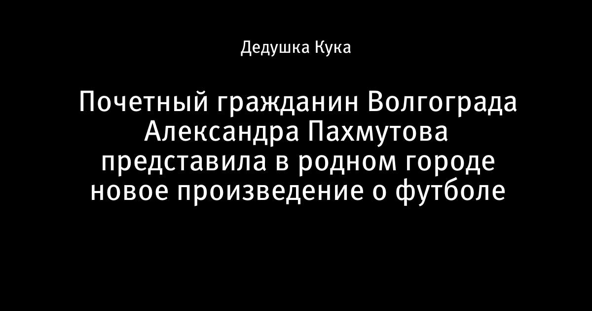 Удивлен тем, что публикую здесь эту информацию первым. Искренне удивлен, потому что не в Волгограде нахожусь и некоторые новости отсюда получаю только благодаря своей, гм, настырности. Александра Николаевна Пахмутова – да-да, та самая, чье детство прошло в доме на Бекетовке около рынка (ныне нет уже этого дома, снесли) объявила, что местом официального представления ее новой песни о футболе, написанной в творческом содружестве с Николаем Добронравовым, стал именно Волгоград.