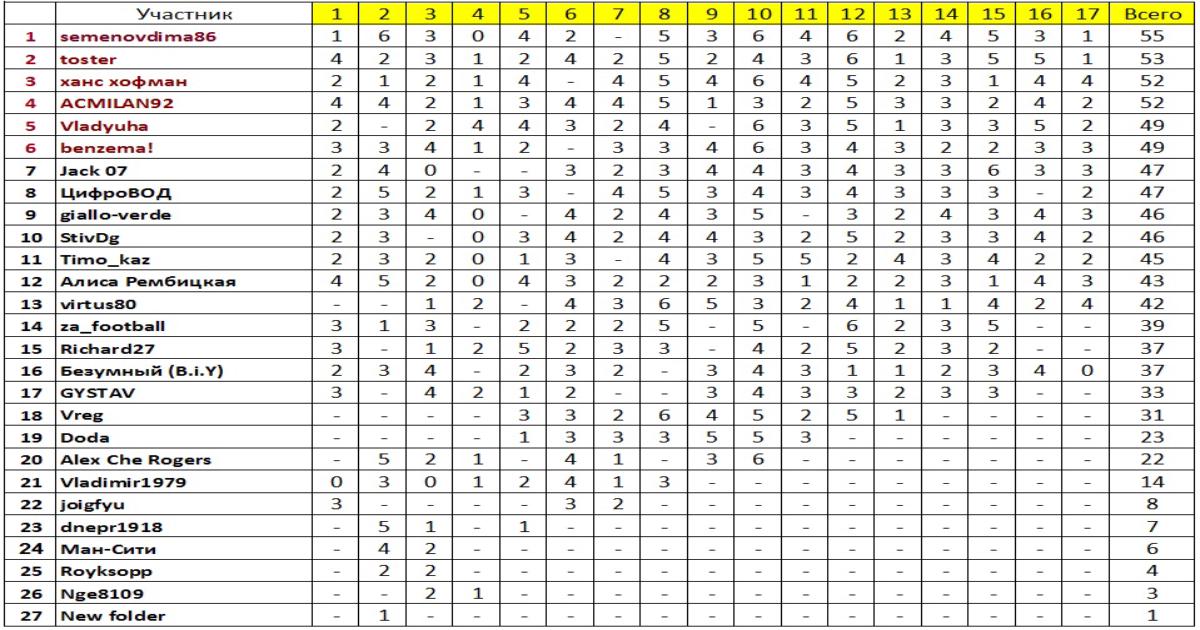 Итоговая таблица Лиги Тотал: