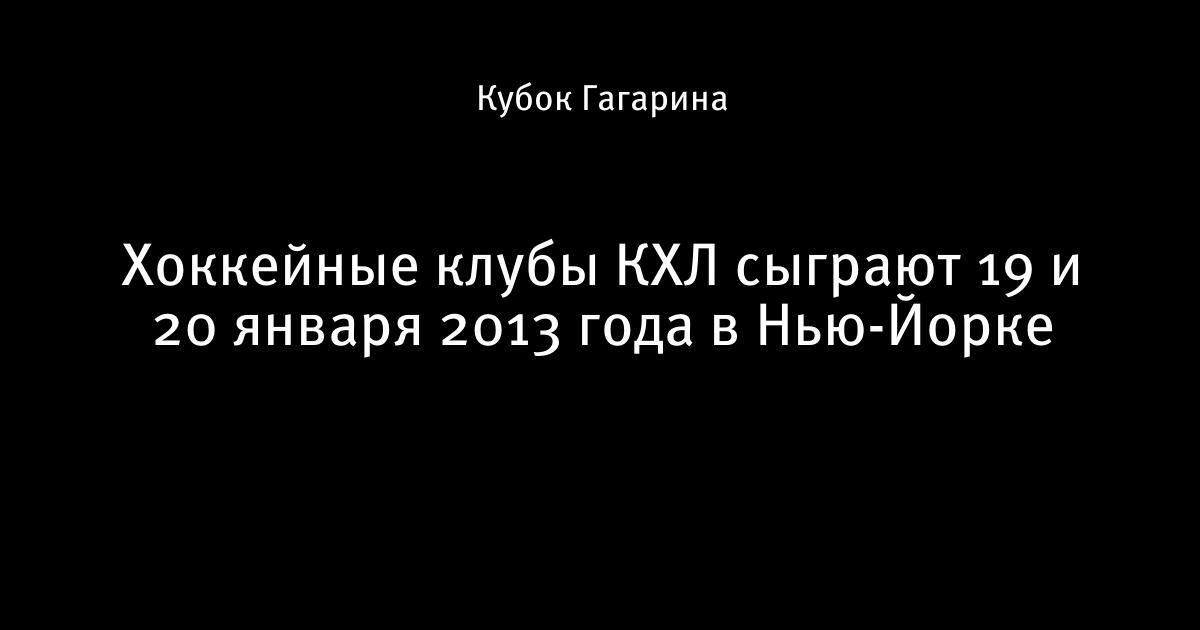 Хоккейные клубы КХЛ сыграют 19 и 20 января 2013 года в Нью-Йорке
