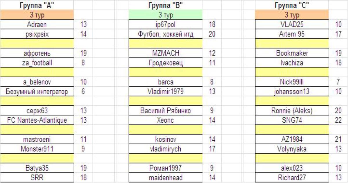 Турнирное положение в группах будет публиковаться после сыгранного тура