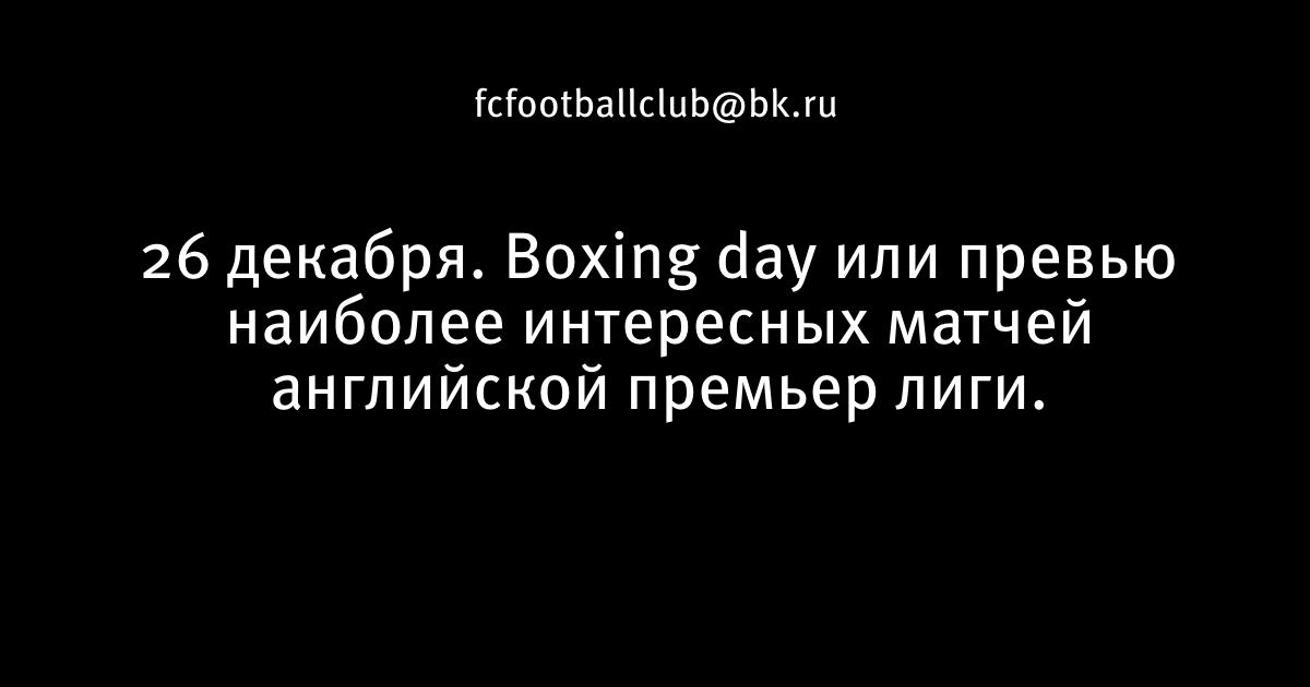 26 декабря. Boxing day или превью наиболее интересных матчей английской премьер лиги.