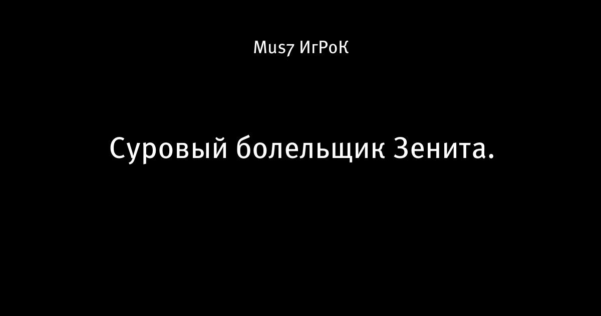 30 декабря 2012, 12:46 Суровый болельщик Зенита. Автор Mus7 ИгРоК Этот пост опубликован в блоге на Трибуне Sports.ru. Присоединяйтесь к крупнейшему сообществу спортивных болельщиков! Другие посты блога Спортивные баталии