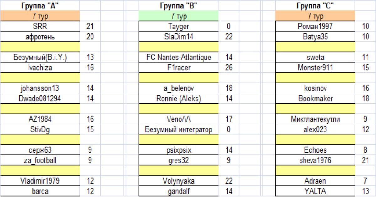 Турнирное положение в группах после сыгранного тура: