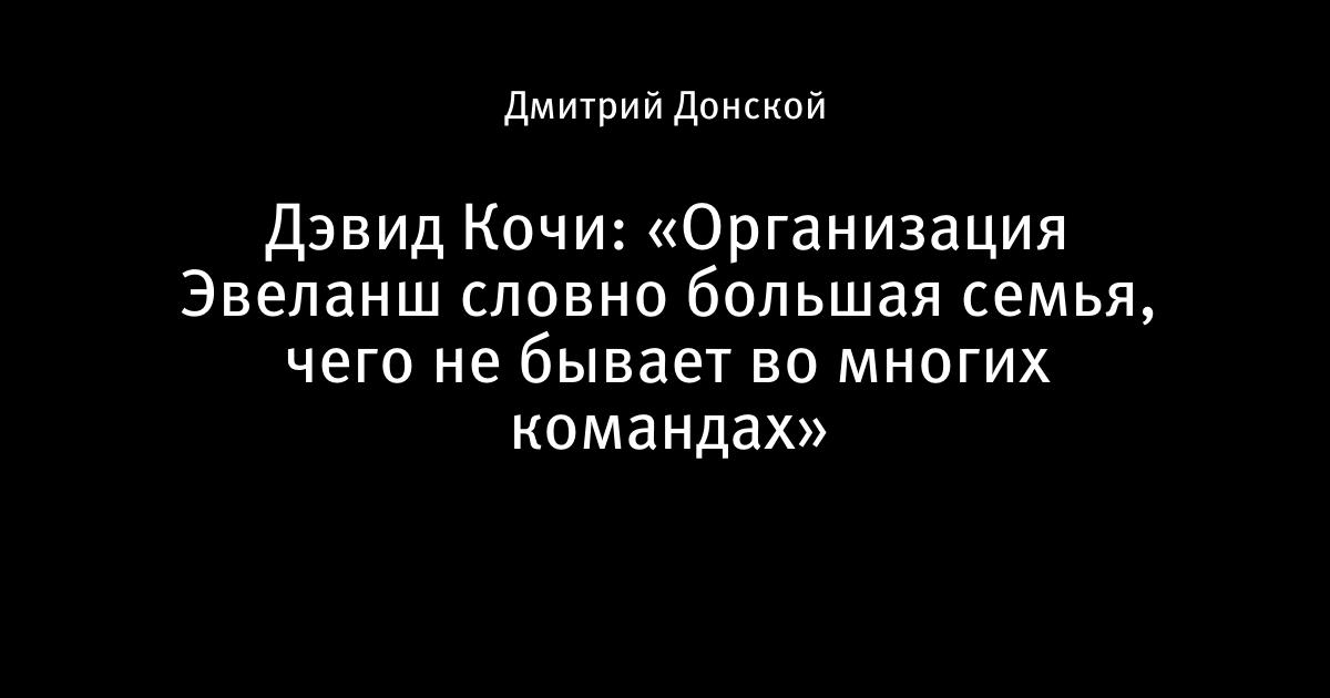 Дэвид Кочи: «Организация Эвеланш словно большая семья, чего не бывает во многих командах»